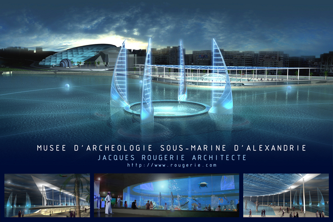 В районе древнего египетского порта Александрия на побережье Средиземного моря, планируется создание подводно-археологического музея, с непосредственным осмотром памятников старины на дне морском. Под водой будут выстроены тоннели из высокопрочного стекла, способного противостоять повышенному давлению воды на глубине. Многие находки не представляется возможным поднять на поверхность из-за их ветхости и вероятности разрушения. Посетители, верша прогулки по стеклянным залам необычного музея, смогут любоваться не только затопленными памятниками старины, но и красотами подводной флоры и фауны Средиземного моря.