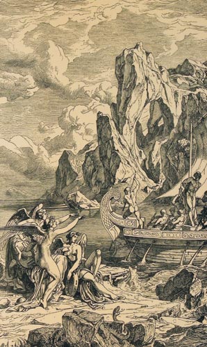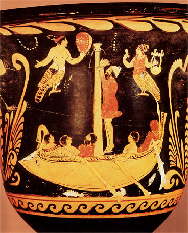 Ввиду отсутствия в те далёкие времена океанских лайнеров, пришлось бедолаге-Одиссею, довольствоваться обычным, самолично сооружённым, деревянным плотом. Хотя, надо отдать должное и нимфе-судостроительнице, ибо она активно помогала Одиссею мастерить онное плавсредство. :ded: