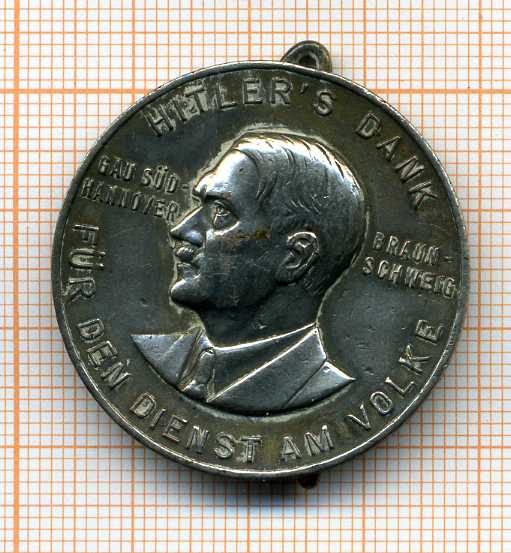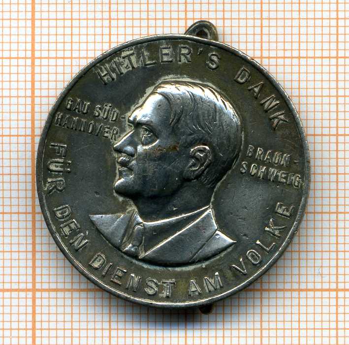 Значок (довольно крупный, посмотрите по миллиметровке сзади) отражает немыслимую радость всех фашистских пионеров и их родителей, что их божественный фюрер посетил их деревеньку Южный Ганновер... А теперь внимание, вопрос знатокам: а сколько стоит такое нацистское безобразие и какой у него тираж был? Если кому надо, могу продать, не жалко. У меня еще есть пол ведра знаков Зимней Помощи и ведомственные знаки поинтересней. Будете в Люксембурге, приходите посмотреть Европейские медали, у меня несколько шкафов. Заранее спасибо