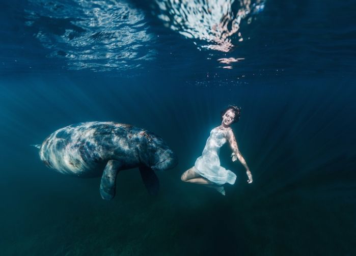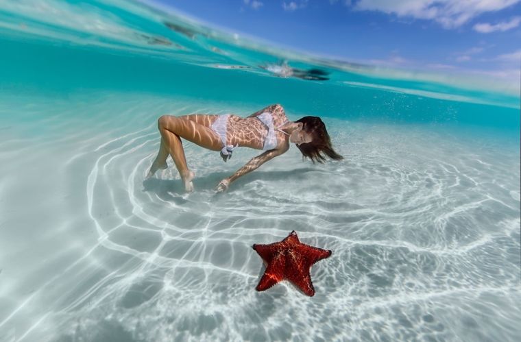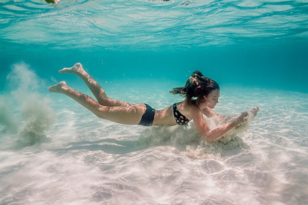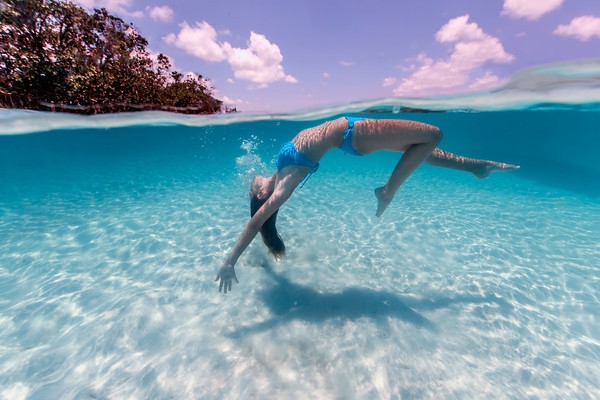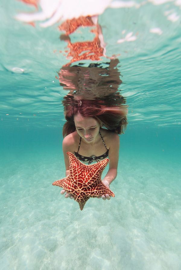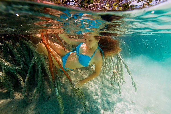 Подводный фотограф Елена Калис долго искала свою музу. Оказалось, что за вдохновением не нужно далеко ходить. Лучшей моделью фотографа стала её дочь. Елена была поражена, как красиво и естественно юная девушка смотрится в воде. Словно эфирная нимфа, Сашенька исследует морские просторы у Багамских островов...