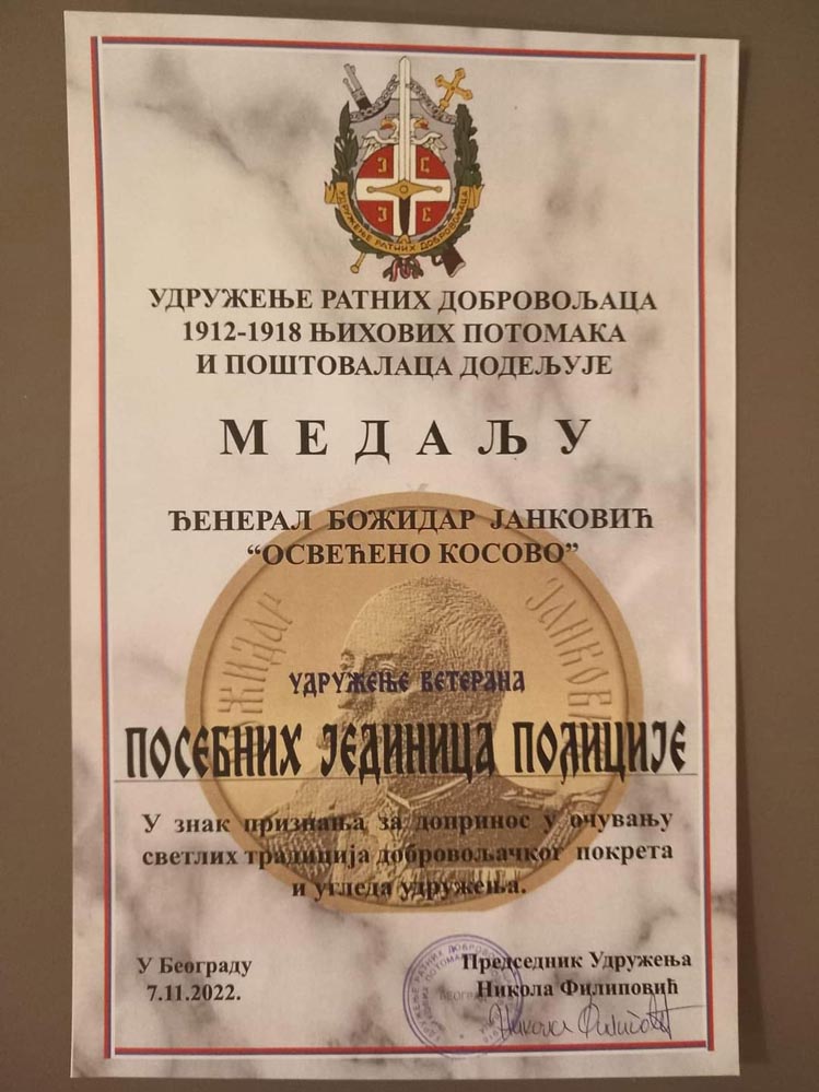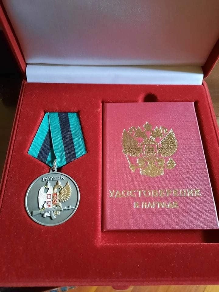 «Ветеранские вести», «Военный синдикат Сербии» и сербская ветеранская организация «Царь Душан Сильный» учредили медаль имени Альберта Андиева в память о российских добровольцах в Сербии.Partizankampfer писал(а) Пт, 25 янв 2019 23:12:52: ↑ Ещё одна "левая" и весьма амбициозная организация - "Военный профсоюз Сербии" (серб. Војни синдикат Србије)
