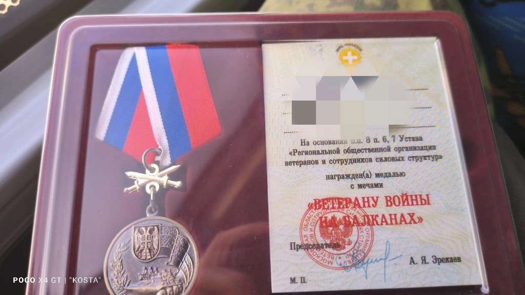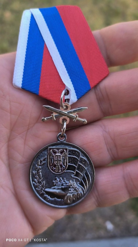 Медалька оказалась российской и называется незатейливо "Ратник". Вручается некой Московской городской общественной организацией ветеранов боевых действий в Республике Сербской (1992-1995). Что за организация понятия не имею, даже сайт не гуглится...Михаил_Тренихин писал(а) Сб, 16 апр 2022 22:10:04: ↑ Лента, как у медали «За освобождение Белграда».