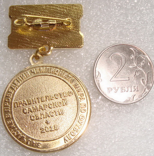 1. За участие в проведении чемпионата мира по футболу2018 г. Правительство Самарской области. Материал: латунь. Состояние на фото, новый.