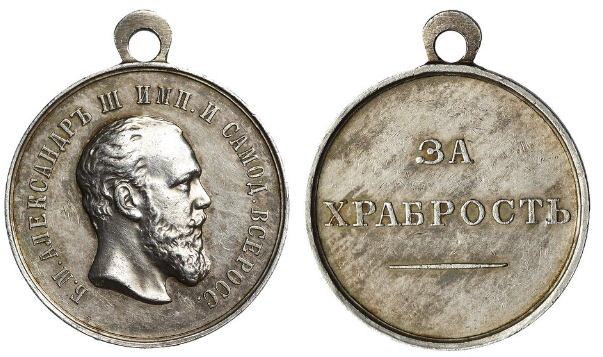 Медаль «За храбрость», учреждённая в 1807 году, предназначалась для награждения воинов иррегулярных войск и военизированных формирований (казачьих, ополченческих, конно-иррегулярных, милицейских, полицейских, охранных, сторожевых), не имеющих офицерских и классных чинов, за отличия в боевых действиях, а также за подвиги, проявленные в схватках с нарушителями общественного порядка и хищными зверями, как в военное, так и в мирное время.