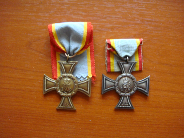 За храбрость на поле боя. Это по сути аналог прусского Железного Креста. Серебряный или бронзовый (с серебрением) это всего лишь металл, из которого крест изготовлен. Были кресты второго класса на ленте и первого на заколке.любитель2 писал(а) :За что давались такие серебрянный и бронзовый кресты?