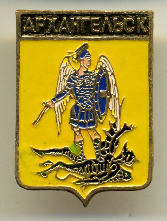 а это уже русская интерпретация борьбы Добра со Злом в гербах города Архангельска,где