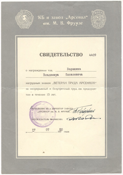 Свидетельство к знаку ветерана.koz писал(а) Вс, 17 дек 2017 17:24:16: ↑ Ленинградские заводы и производственные ,научные объединения