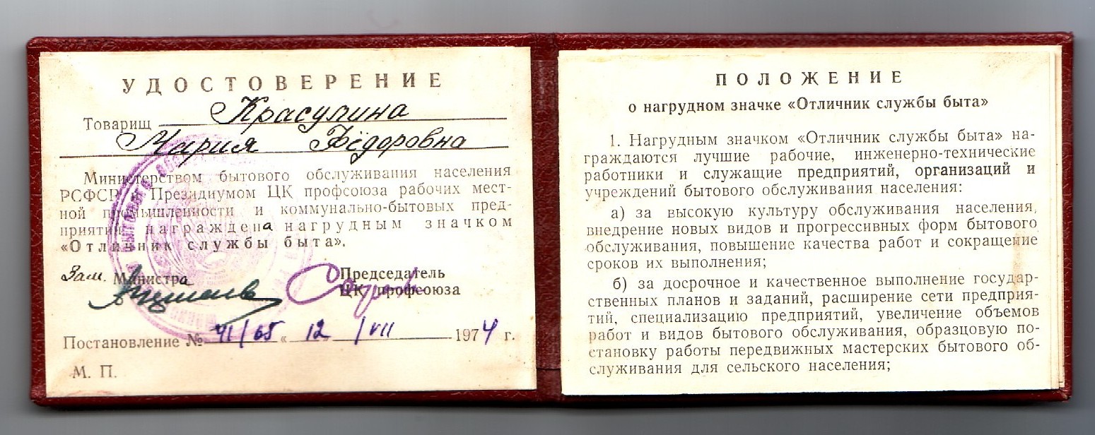 Отличник бытового обслуживания населения.