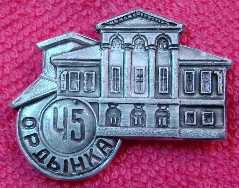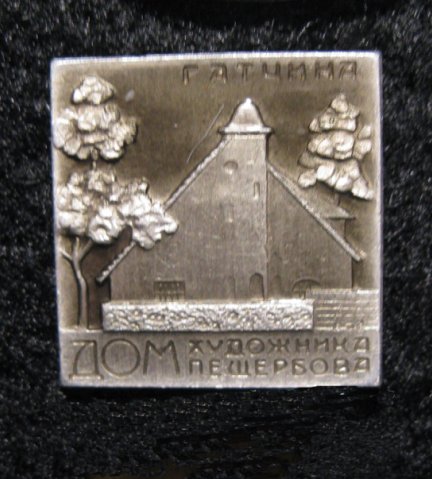 Там купил значок. Размер 26 х 41 мм; материал - алюминий, крепление - булавка; без клейма. Цена 30р.