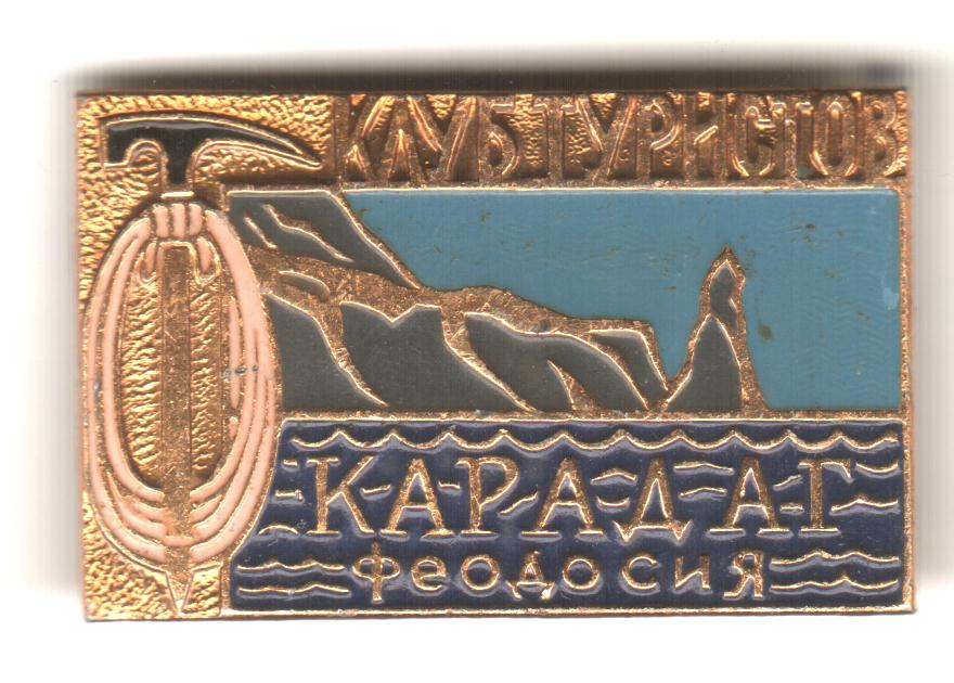 Вот представляю туристический значок, на котором написано слово "КАРАДАГ".