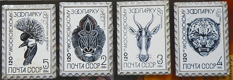 У меня по Московскому зоопарку 5 серий: квадратные - 29 шт, овальные фауна Африки - 21 шт, прямоугольник с закругленными углами фауна Азии - 11 шт, с фигурным обрезом Московский зоопарк - 3 шт ( козерог сибирьский, слон индийский, тукан желтогорлый), марки - зеркалки - 3 шт ( ара, бонтебок, ирбис).