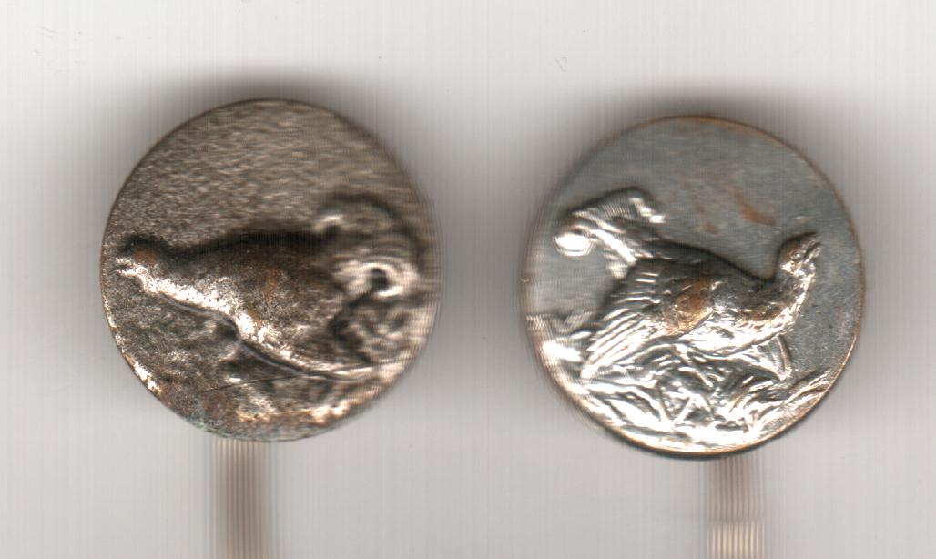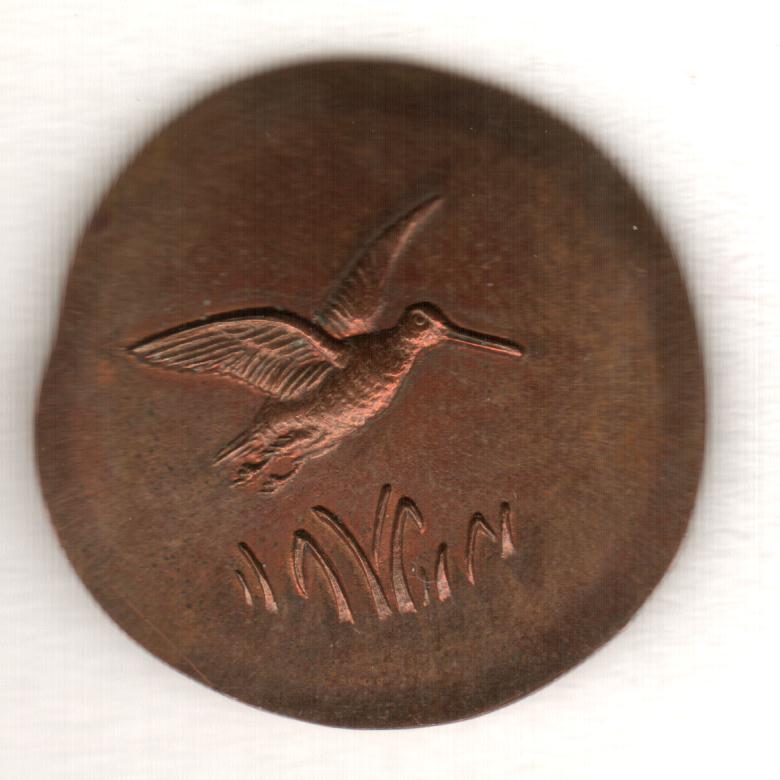 Размер 36 х 28 мм. Материал - алюминий; Крепление - булавка; Вместо клейма (.). Тираж около 1000 экз. (выпуск около 2000 г.)