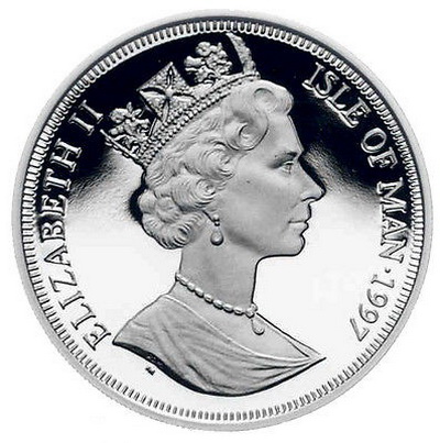 Монета (Остров Мэн, 1 крона 1997 года, серебро) (из серии "История кошек").
