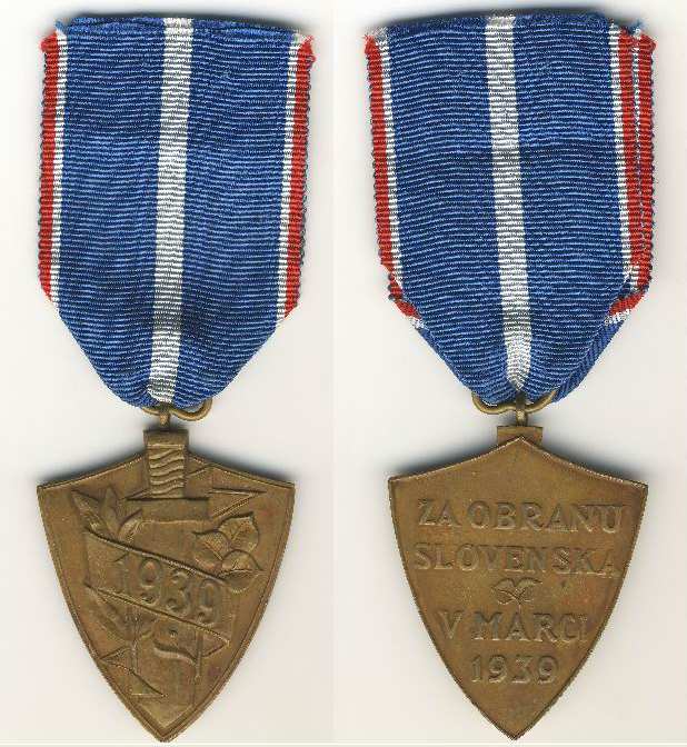 Аверс медали: голова льва в венке из липовых веток , поверх которой наложен меч , верхней части надпись на ленте“Za chrabrosť” (За храбрость) , в лапах у льва словацкий патриархальный крест