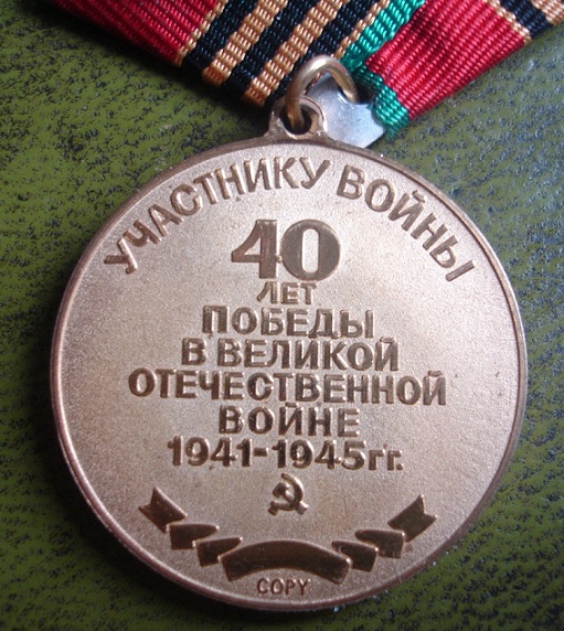 имелось ввиду не просто медаль для иностранцев (без надписи),а медаль "40 лет Победы в ВОВ",как для участников войны так и для участников трудового фронтаsmash писал(а) :А разве у медалей,предназначенных для иностранцев были варианты???леший писал(а) : причём довольно редкий вариант этой медали.