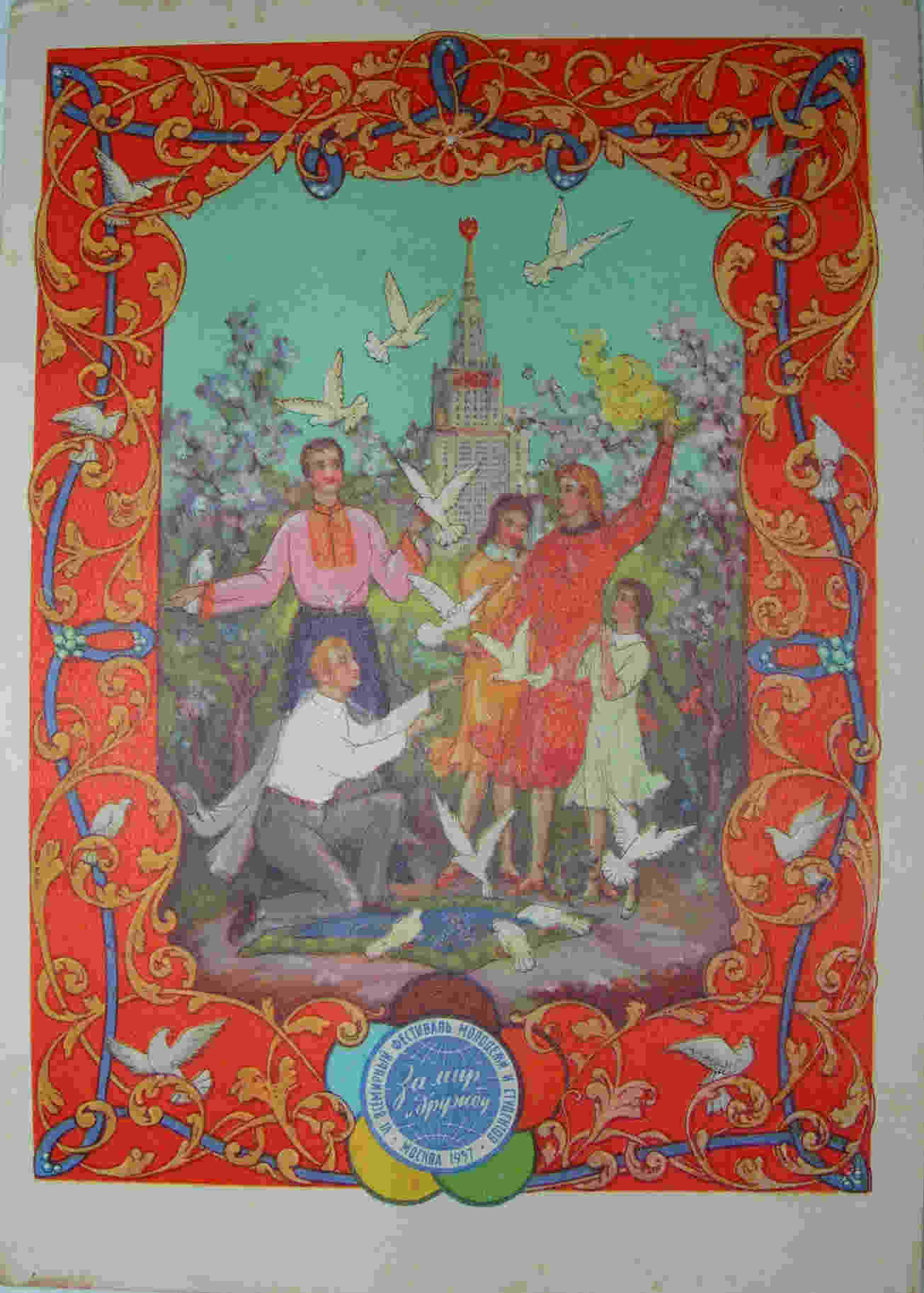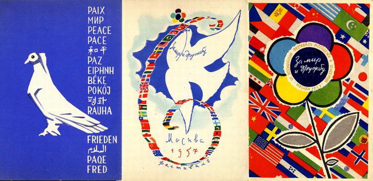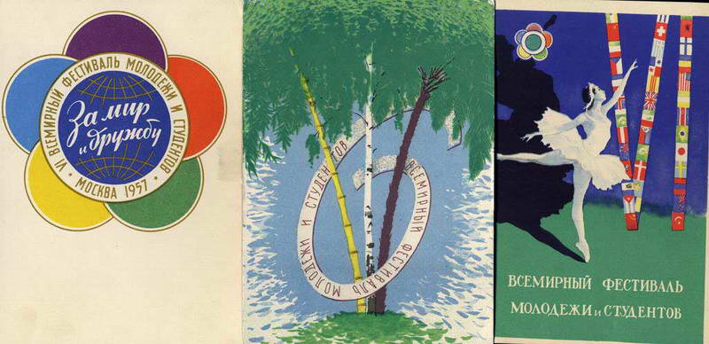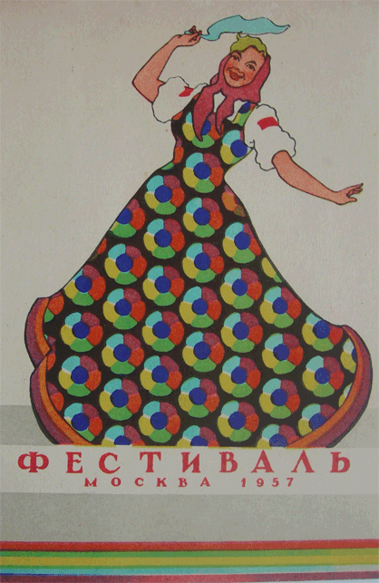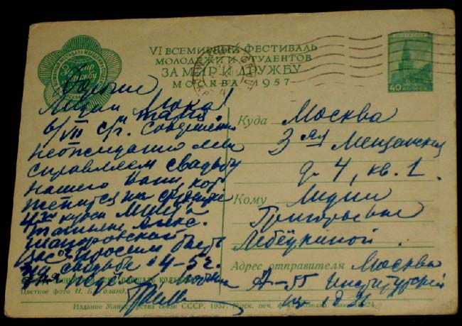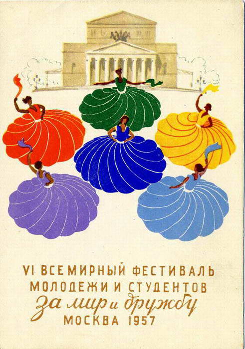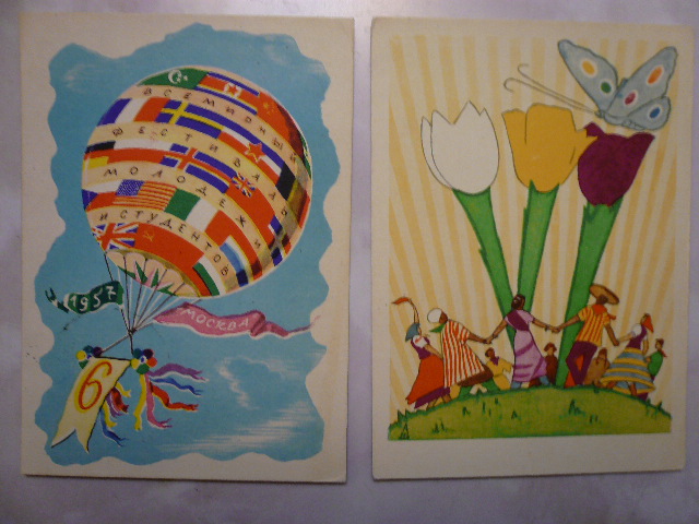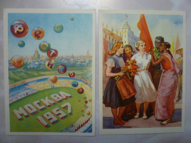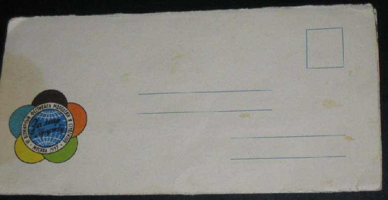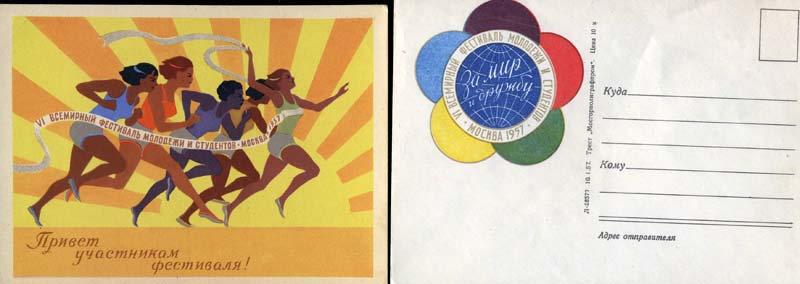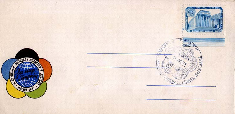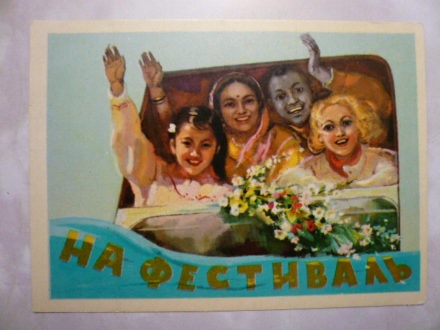 Открытка 1958 г. Международная филателистическая выставка в Москве (не совсем фестиваль), но как видим по оформлению основной её темой был "Фестиваль".
