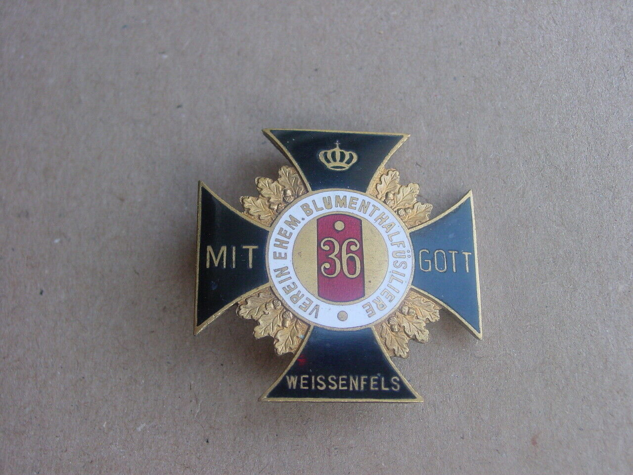 Знак общества бывших служивых 36-го фузилерного полка в Вайсенфельсе. Жаль заколка сломана, а так наблюдаю очень сочный и жизнерадостный дизайн знака.