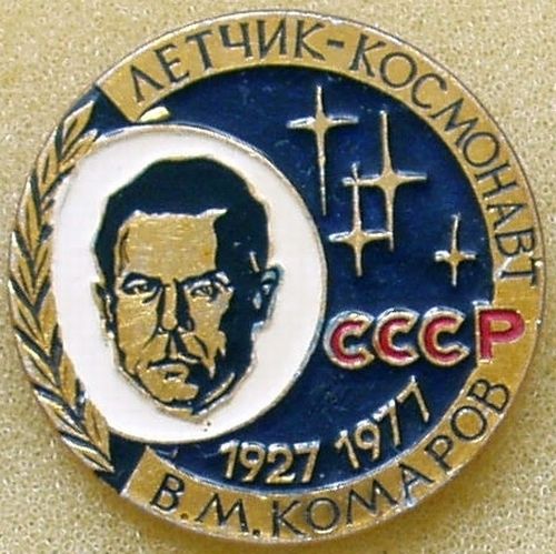 Вот такой знак, посвященный В.М. Комарову. Размер 32 х 30 мм.