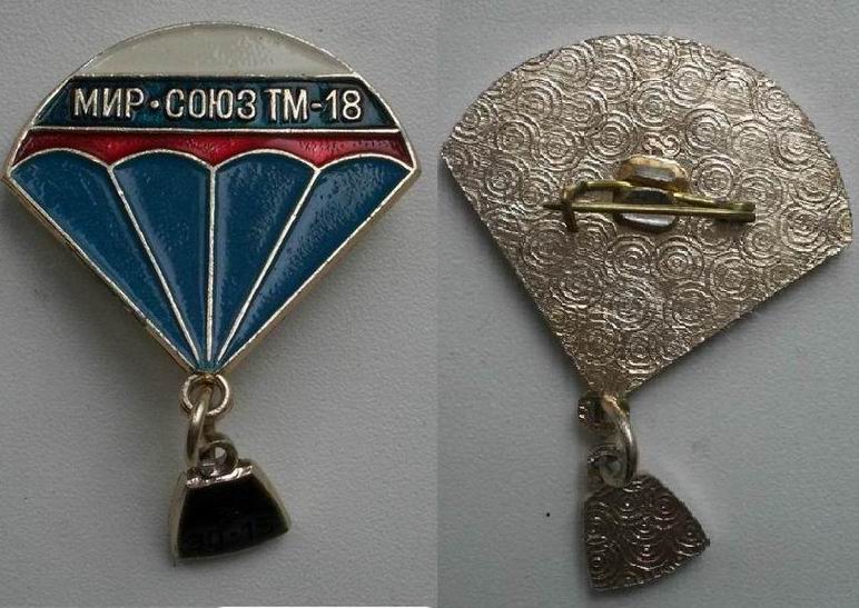 Значок (если это значок) Мир-Союз-ТМ-18 никогда ранее не встречался. "Значок" явно прощёл хирургическую операцию, в ходе которой получил цангу. На снимке были и другие известные значки советских времён, которые также получили цангу вместо родной заколки.