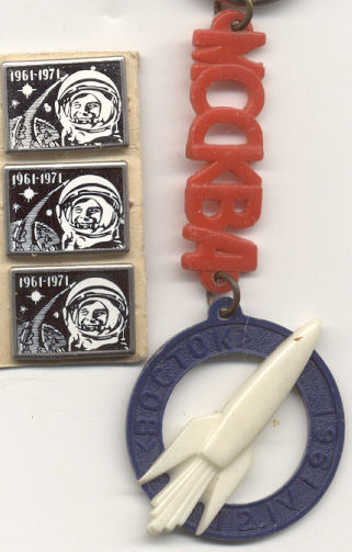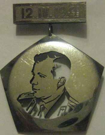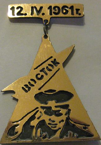 "Пуговица", диаметр 55 мм тоже из Звёздного городка, привезли мне его дней 10 назад. А сегодня ходил во вновь открывшийся Музей космонавтики ,экспозиция интересная, познавательная ,но к сожалению ни одного значка ни нового, ни старого ,даже обидно как-то за музей. Могли бы позаботится , чтобы посетители купили сувениры на память, а в киоске одни космические консервы по "космическим " ценам, воздушные шарики с портретом Гагарина и несколько книг тоже по астрономическим ценам.Вот такие впечатления о культпоходе.