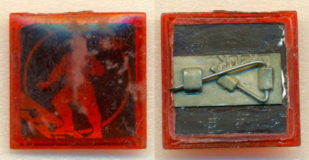 Самих знаков сейчас у меня нет (они у одного не обязательного коллекционера, который никак не соберётся их вернуть) есть только сканы плохого качества, покажу их, а потом можно убрать или кто -то покажет свои подобные значки. (Значки появились, заменю сканы на фото.)