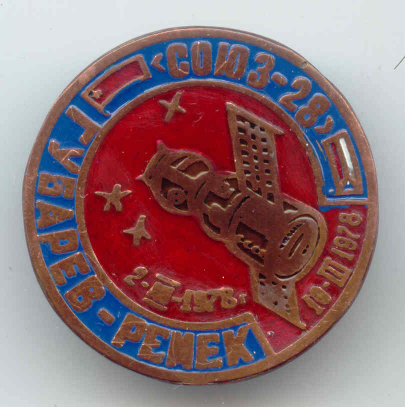 Алекс, второй знак с юбилейной датой под заколкой, в Росии изготовлен,aleks950 писал(а) :Союз - 28. Губарев - Ремек.