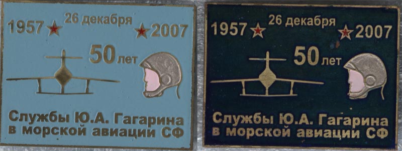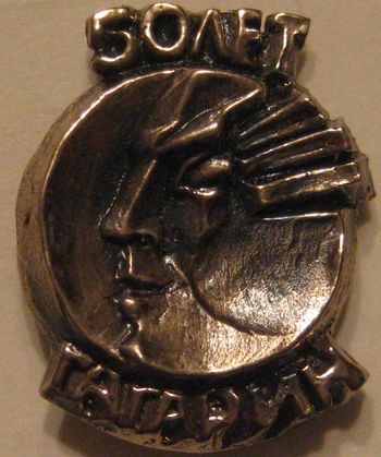 К показанным ранее разновидностям значка в память о 50-летии Гагарина (стр. 10, сообщения от 8.03.2010) добавляется вариант из анодированного алюминия с надписью на обороте "50 лет со дня рождения".