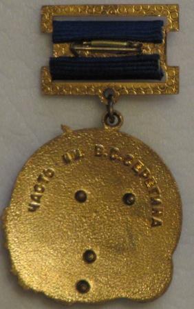 Решил в этом разделе показать медали,посвященные части им.В.С.Серёгина.Серёгин В.С.,командир авиационной части ЦПК,инженер-полковник,Герой Советского Союза,погиб во время тренировочного полёта на МИГ-15 УТИ вместе с Ю.А.Гагариным 27 марта 1968 г.Авиационная часть им.Серёгина преобразована в 70-й ОИТАПОН им. В.С.Серёгина (отдельный испытательно-тренировочный авиационный полк особого назначения), входила в состав ЦПК (РГНИИ ЦПК) (пос.Чкаловский).В 2010 г.на базе бывшего 70-го полка создано авиационное управление ФГБУ "НИИ ЦПК им.Ю.А.Гагарина".