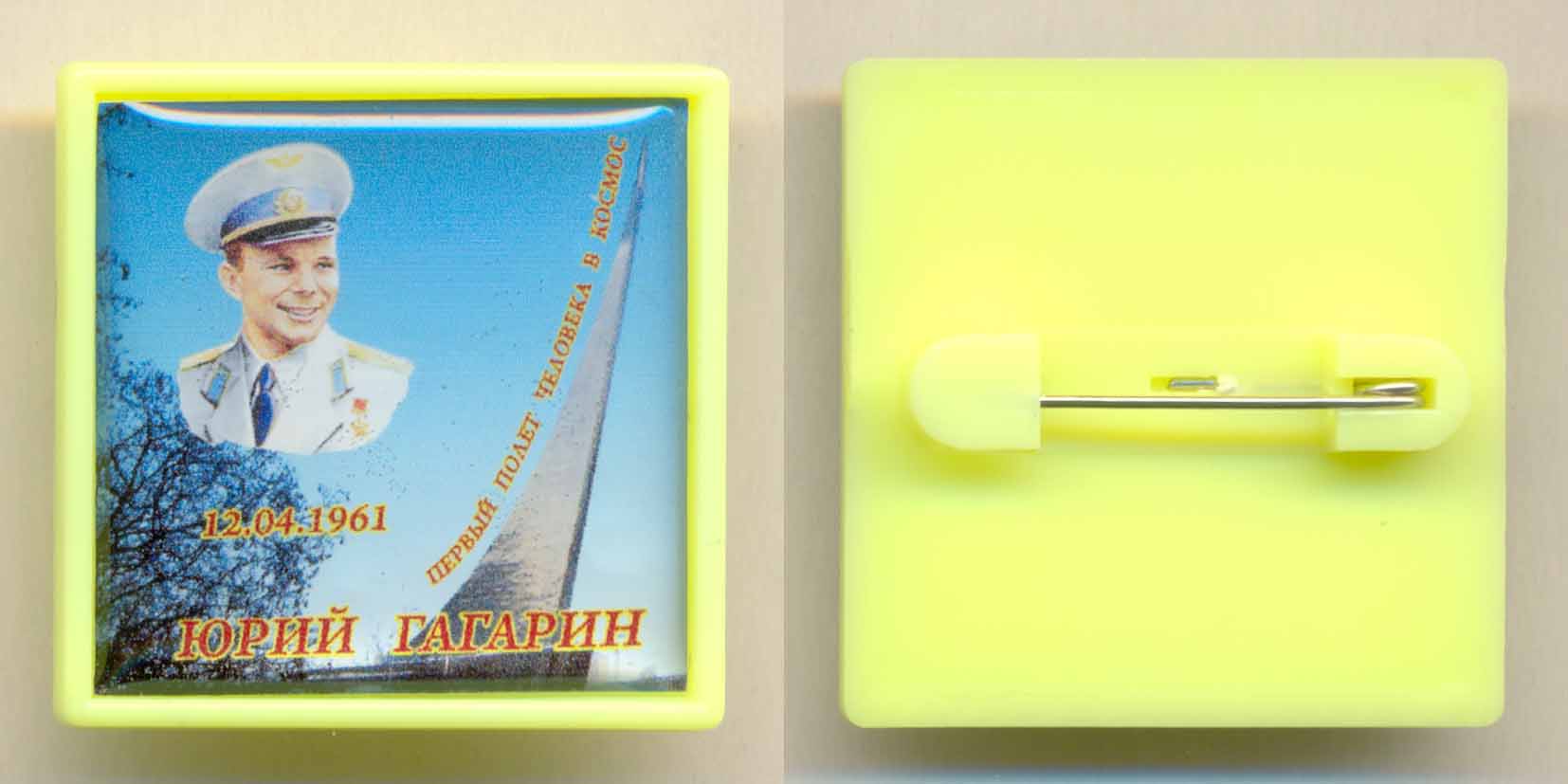 Юрий Гагарин, заливной значок квадратный, 30x30 мм.