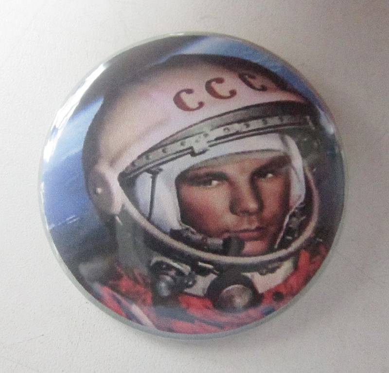 Юрий Гагарин, заливной значок круглый, 26 мм.