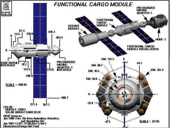 ФГБ - функционально-грузовой блок "ЗАРЯ". Это 1-й модуль (functional cargo-module), массой более 20 т, МКС , с которого начинается сборка станции на околоземной орбите. Модуль обеспечивает управленние полётом, связи, электропитания, связки модулей и топливные манипуляции.