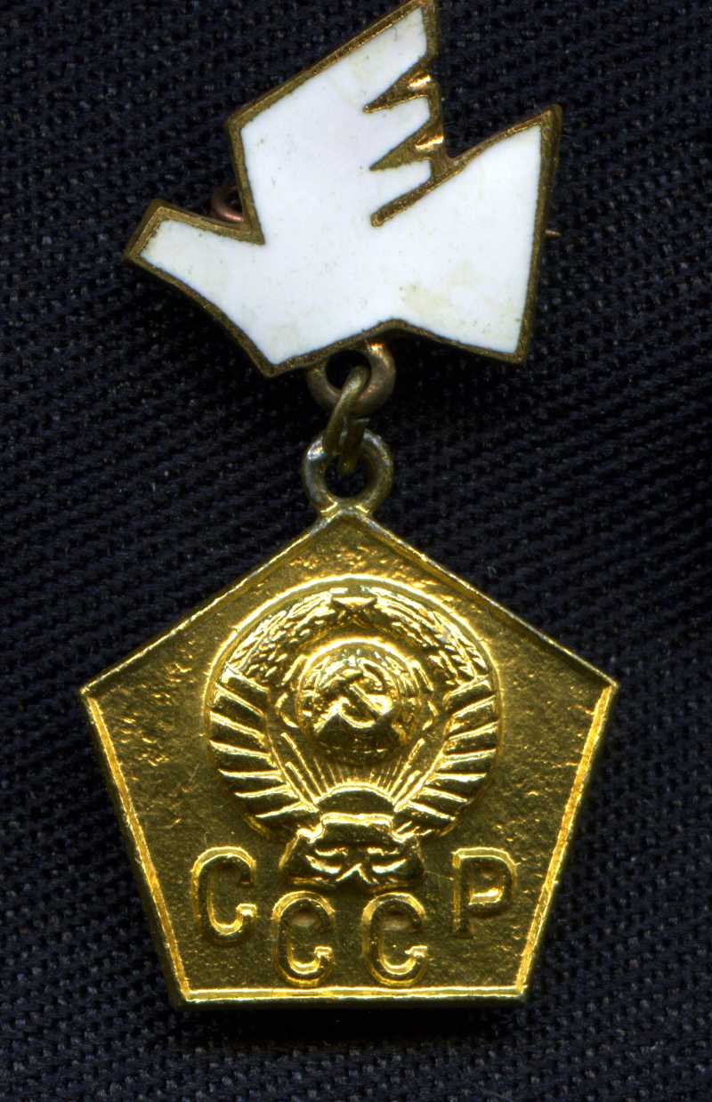 Также старый, но более распространённый значок. Известен серебристый вариант.