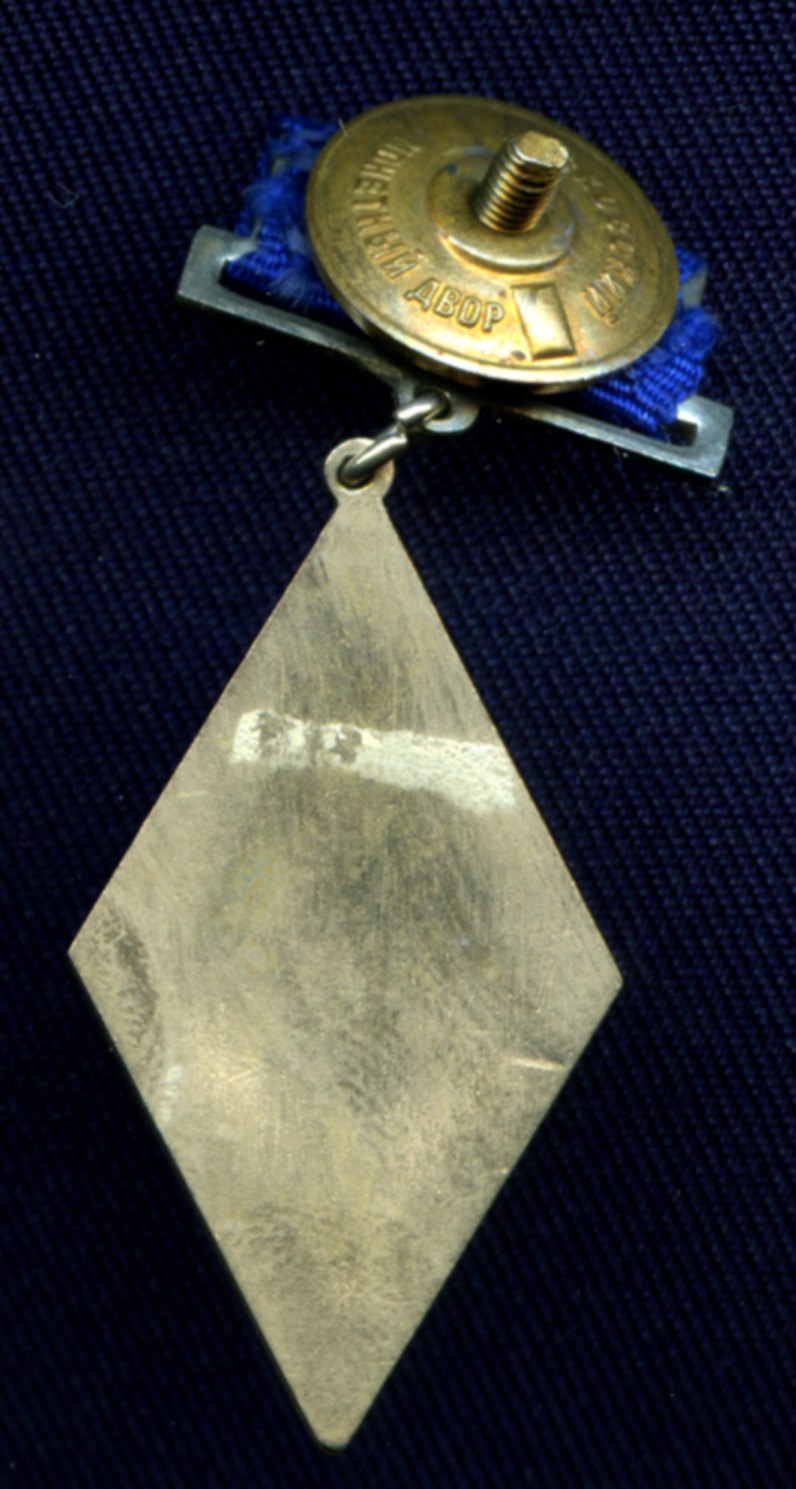 Привожу сканы значка-соседа показанных выше уважаемым аleks950. № Х.20 по Ильинскому. Ромб этого значка несколько крупнее, чем у Х.21: сторона имеет длину 22 мм (18 мм у Х.21). Что интересно, в каталоге крепление указано булавочное, а этот имеет винтовое.