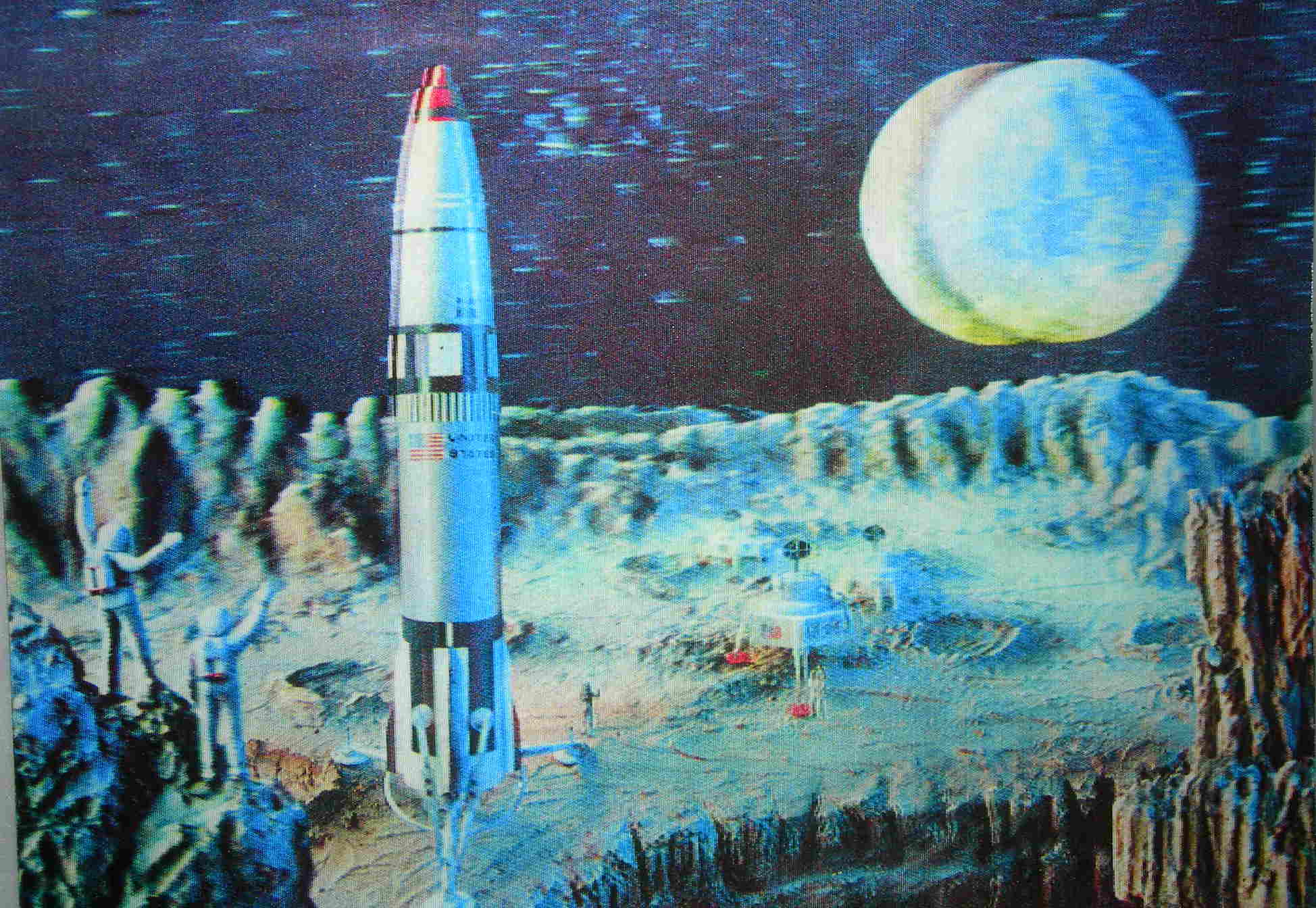 Американская обьемная открытка с фантастическим сюжетом освоения Луны.