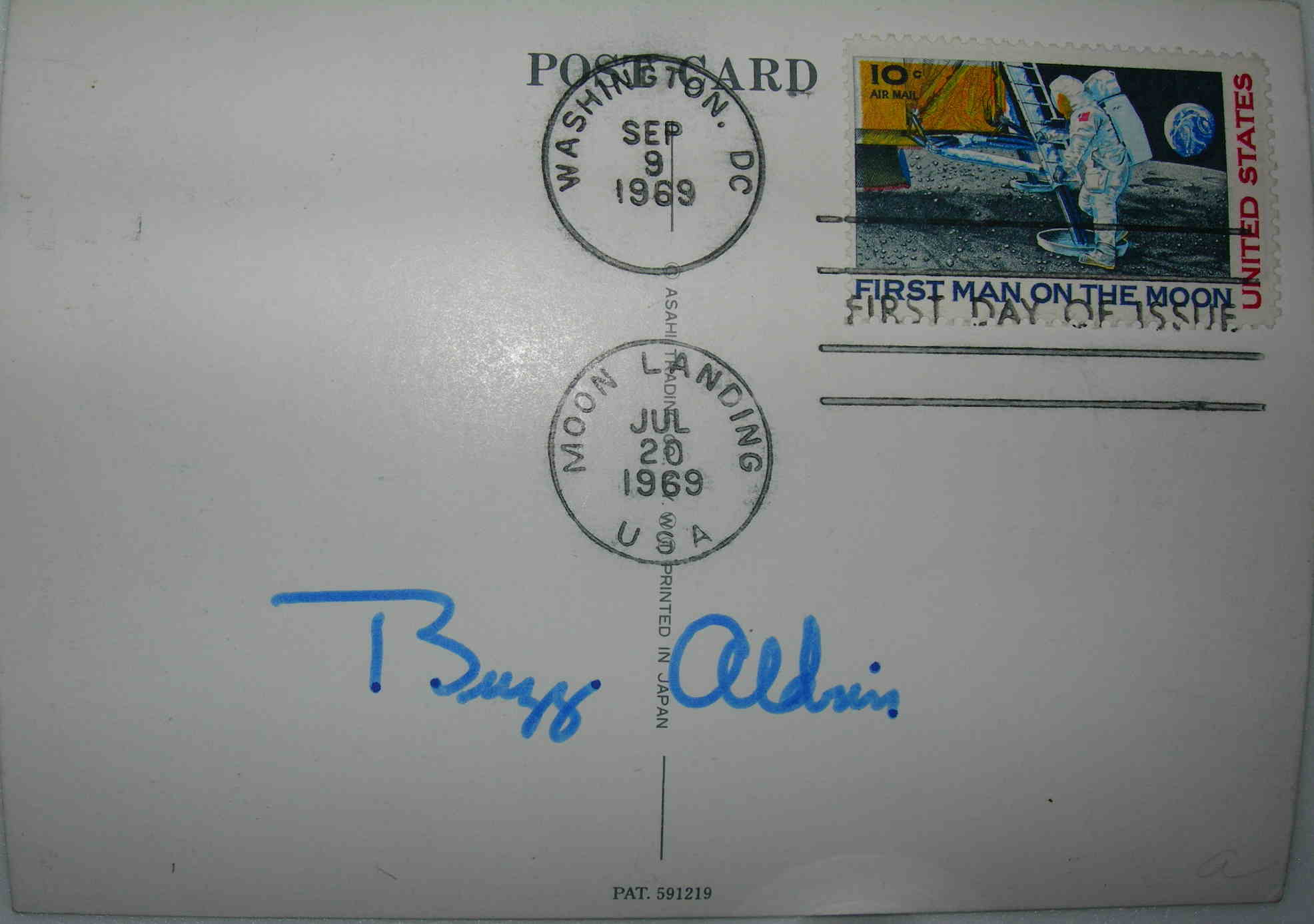 На открытке автограф Бази Олдрина (второй человек вступивший на Луну)
