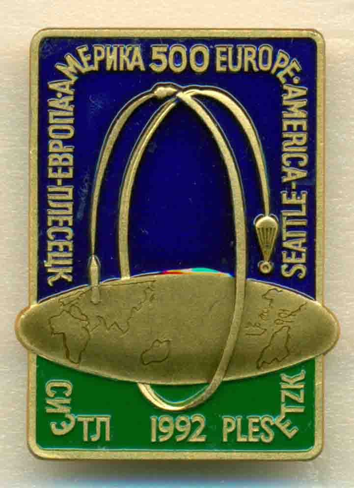 Значок выпущен в связи с проектом "Европа - Америка - 500", посвященным 500-летию открытия Колумбом Америки и Международному году космоса. В рамках проекта 16 ноября 1992 года с космодрома Плесецк был запущен спутник "Ресурс-500". Через 6 дней его спускаемый аппарат приводнился у западного побережья США. 26 ноября в Сиэтле была развернута экспозиция предметов, доставленных "космической почтой".WOL писал(а) :Уважаемые знатоки!
