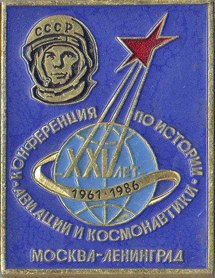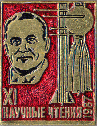 11-е чтения 1987г. На знаке портрет С.П. Королева - видно посвящены 80-летию со Дня Рождения.
