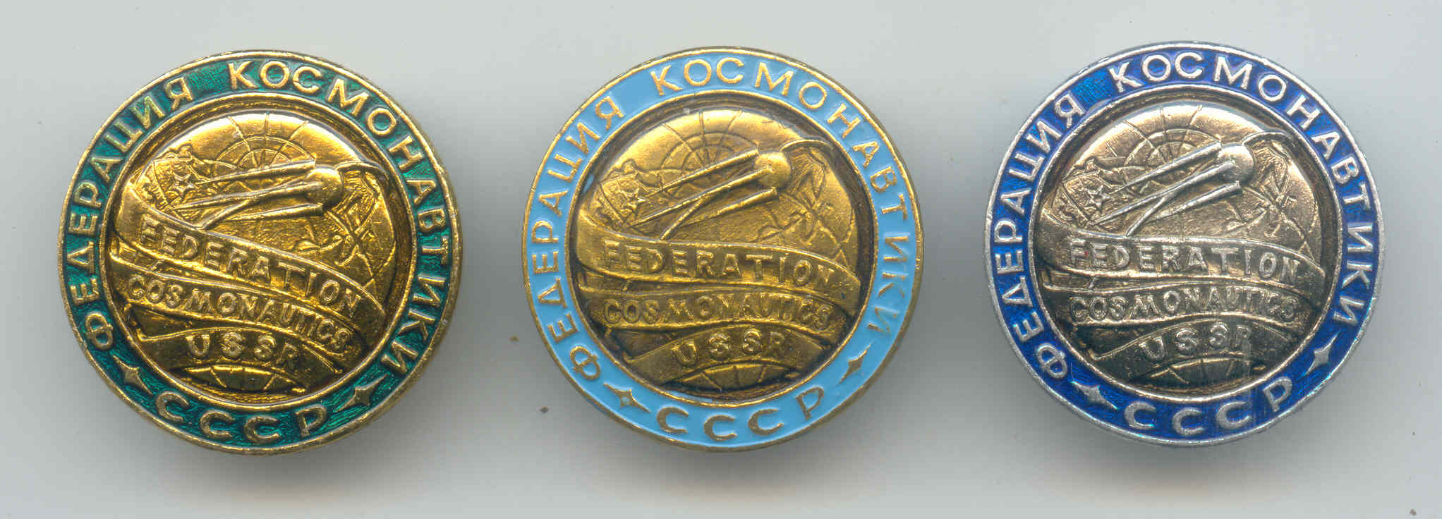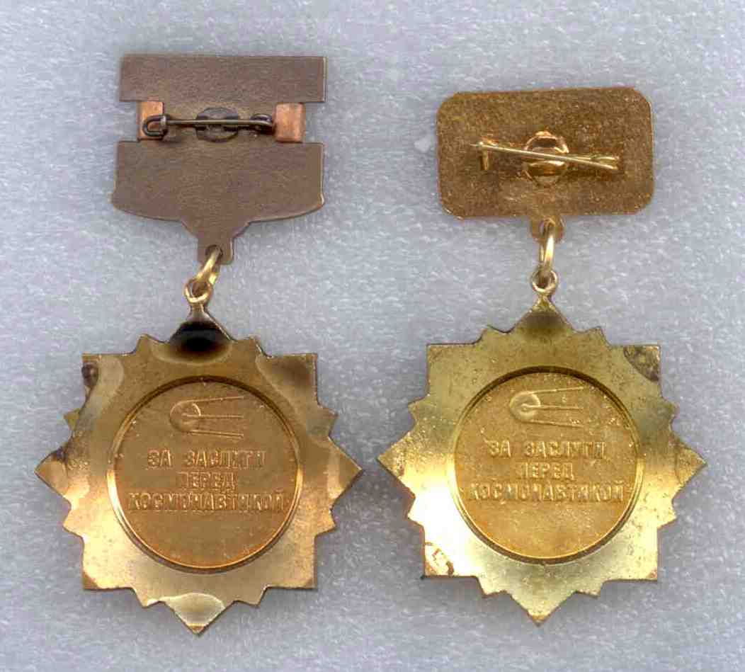 Уважаемые коллеги! nasa_astronaut и Oleg (подобный знак показан уважаемым командиром корабля в теме "Знаки по космосу, не нашедшие пока своей темы") мне кажется, что Вас ввели в заблуждение по поводу этого знака. У Вас показан знак, который я привел первым (куплен мной в магазине в Питере на Садовой рядом с Суворовской кадеткой), а вот второй знак мой наградной (получен от Федерации космонавтики России в 2002 году). Разница очевидна. Размеры 1-го знака 27*39мм, а 2-го 29*42мм и у 1-го знака справа вверху колосья, а у 2-го дубовые и лавровые ветви. Если я не прав, поправьте меня. Хотелось бы узнать есть ли на Ваших знаках какая-нибудь надпись на реверсе?nasa_astronaut писал(а) :Почетный нагрудный знак "Ветеран космонавтики России". Награда Федерации космонавтики России.