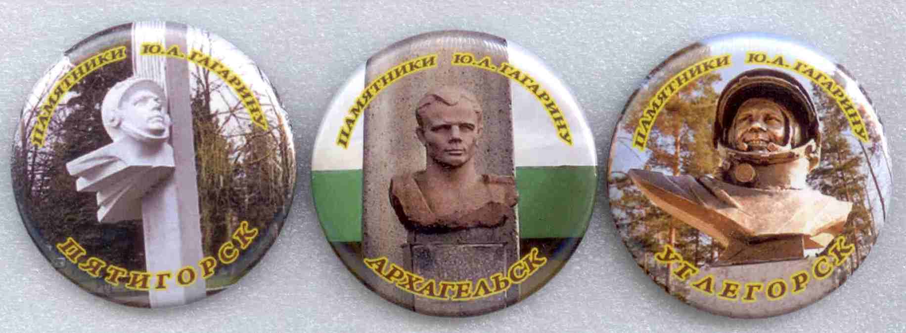 И ещё памятники Ю.А.Гагарину. Удивительно, но для себя, благодаря значкам, делаю открытие, - как много есть памятников первому космонавту!