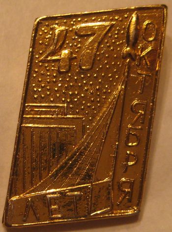 Вот, попалось на стр. 7 соседней ветки "Космическая символика"... http://forum.faleristika.info/viewtopic ... &start=120Ostfront писал(а) :Будем ждать,может появится изображение в сети с другой колодкой.http://forum.faleristika.info/viewtopic ... &start=280aleks950 писал(а) :Интересный значок. Но очень похоже на сборный вариант - колодочка, скорее всего, не родная.Ostfront писал(а) :50 лет ОКТЯБРЯ.