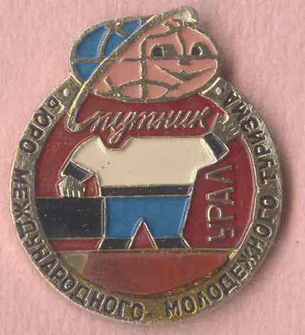 "Спутник" с эмблемой олимпиады, стекло, металл (немного испорчен), размер 28х24 мм.