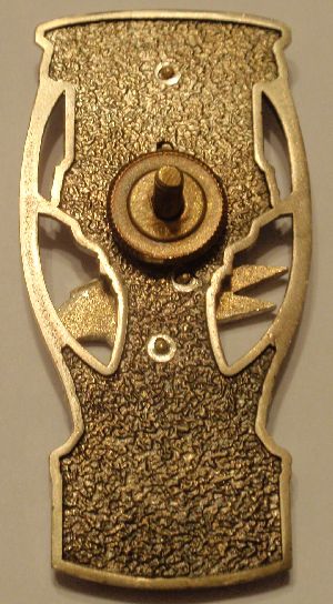 Значки с турнира по вольной борьбе с другим вариантом колодок. Первоначально, по видимому, они должны были быть с заколками, о чём говорит реверс значков. Алюминий, размер колодки 28,5 х 15 мм.