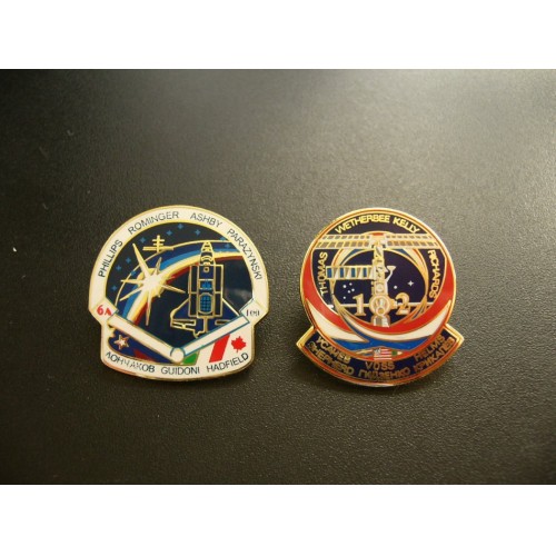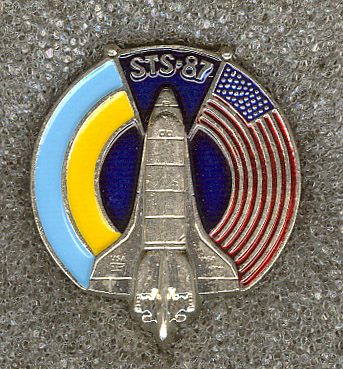 Два украинских значка, посвящённых полёту украинского космонавта Леонида Каденюка на американском Шатле (полёт STS-87, ноябрь 1997г).