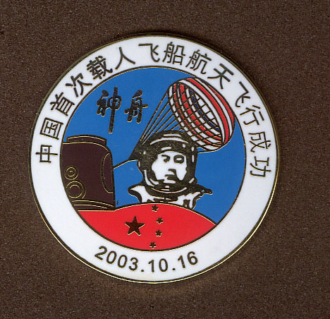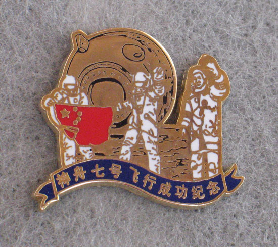 Четыре значка посвящённых полёту китайского корабля Шенжоу-7 с тремя космонавтами (тайконавтами) на борту. В ходе трёхсуточного полёта, состоявшегося в сентябре 2008 года, один из космонавтов вышел в открытых космос.