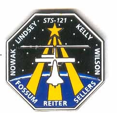 Знак размером 4,5 * 5см. Надпись внизу: "В память о Челленджере" + имена астронавтов.