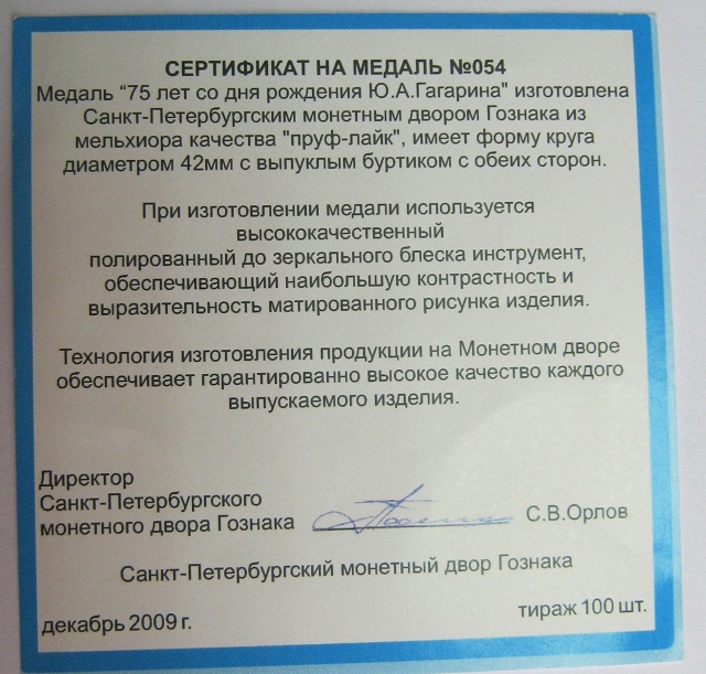 АНТОН, спасибо! Это большая серия, с десяток медалей и плакет, часть которой Вы показали в соответствующих темах. Там еще были Королев, Терешкова, собачки и спутники. Когда-то мне говорили, что выполнена она была на Ленинградском металлическом заводе.