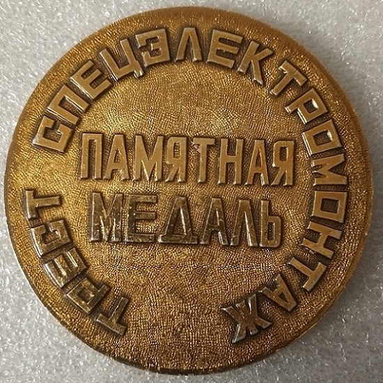 Трест Спецэлектромонтаж 25 лет, алюминий 60мм. Символика имеет прямое отношение к тресту, т.к. он принимал участие в строительстве инфраструктуры космодромов (электрика).