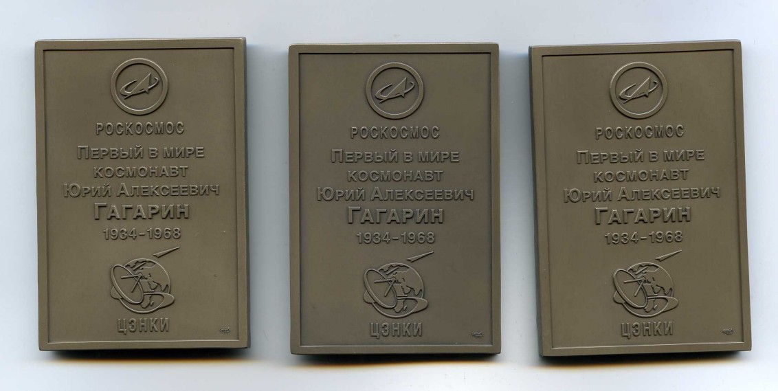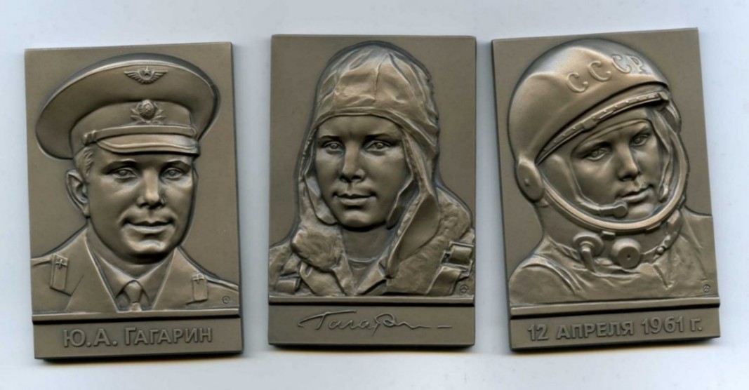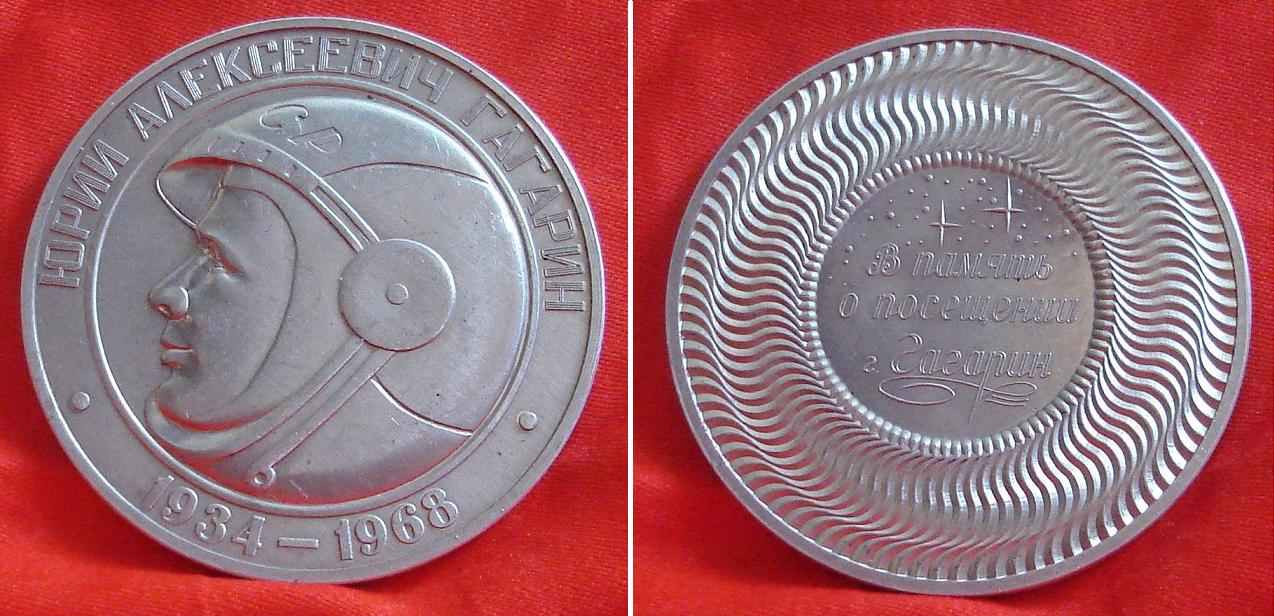 Этот Гагарин был еще в таких вариантах. Малый: 1973г., 72мм, бронза с покрытием, ПМД. Большой - 107мм, на гурте тир. 50 (шт.) и порядковый номер. Без клейма ПМД, из коллекции автора Albert de JAEGER. Реверс не даю, он только что показан.