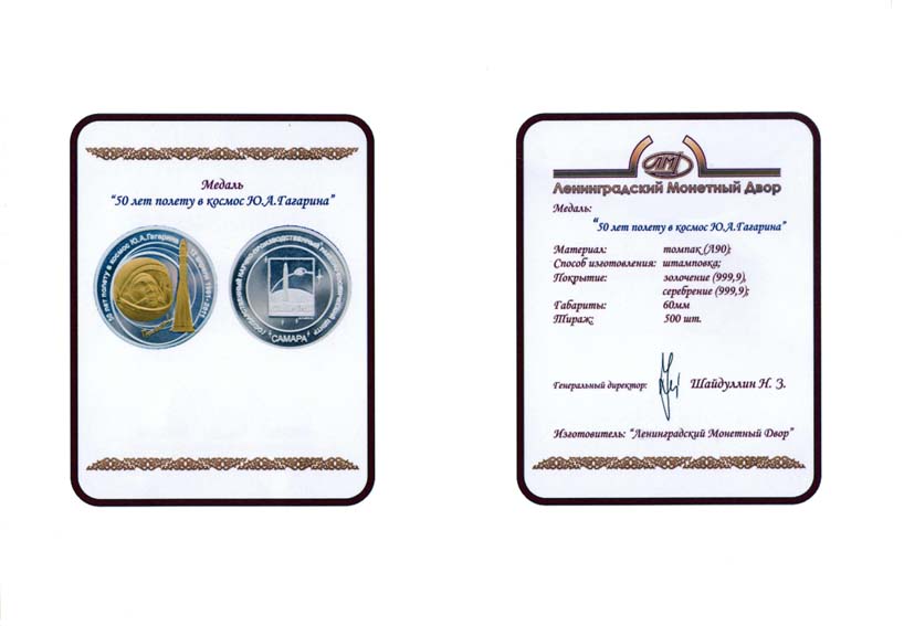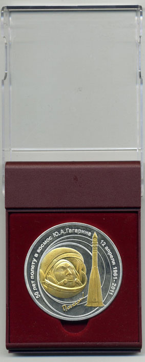 Федеральное космическое агентство к 50-летию полета Ю.А. Гагарина выпустило одностороннюю медаль.