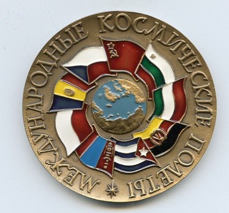 Да, это известная медаль "Интеркосмос". Существует в 3-х вариантах по надписи ИНТЕРКОСМОС (приведен высокий шрифт кириллицей, ниже покажу низкий шрифт и шрифт латиницей). Общий тираж 3-х вариантов, кажется, 305шт. Кроме этого, мне известны еще два варианта по раскраске (оригинальной мондворовской). Реверс у всех этих медалей одинаков - 9 флагов.Ostfront писал(а) :Изображение из сети.